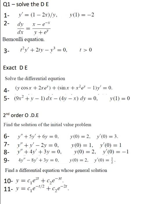 Solved Q1 Solve The De 1 Y 1 2 X Y Y 1 2 2 Chegg Com